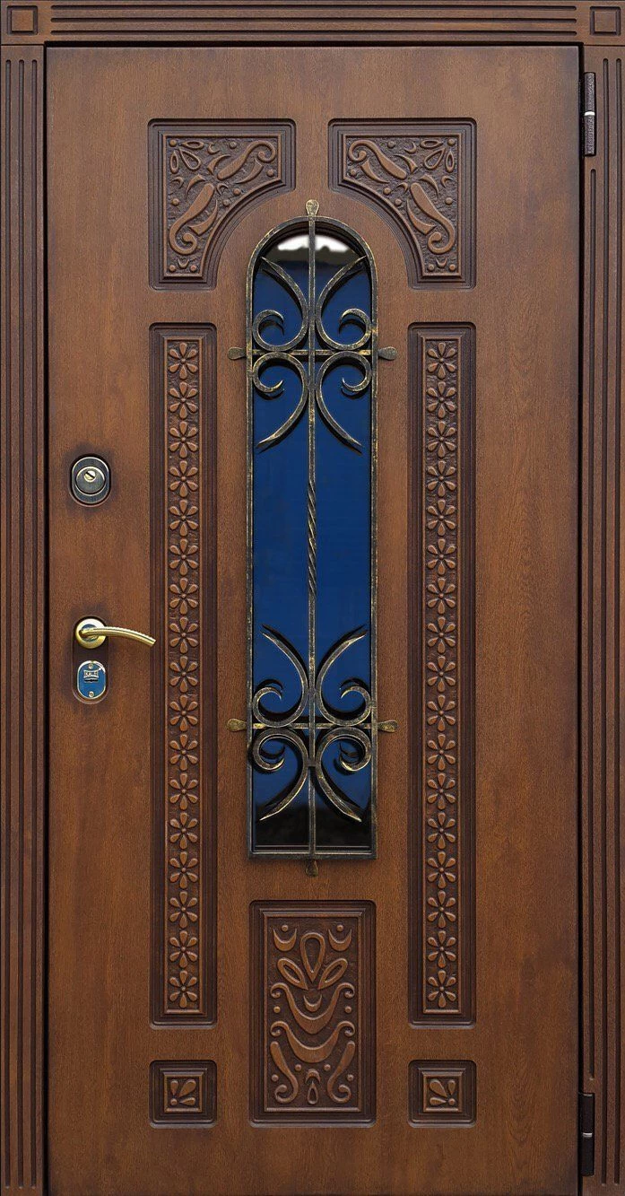 Входные двери в Уржуме с применением декора витражом изготавливаются из стального профиля, придающего прочность конструкции, а сама витражная вставка обладает высокой взломостойкостью, поскольку для витражных композиций используется специальное стекло, обработанное особым образом. Усилить надежность витражного элемента можно с помощью использования декоративных кованных решеток.