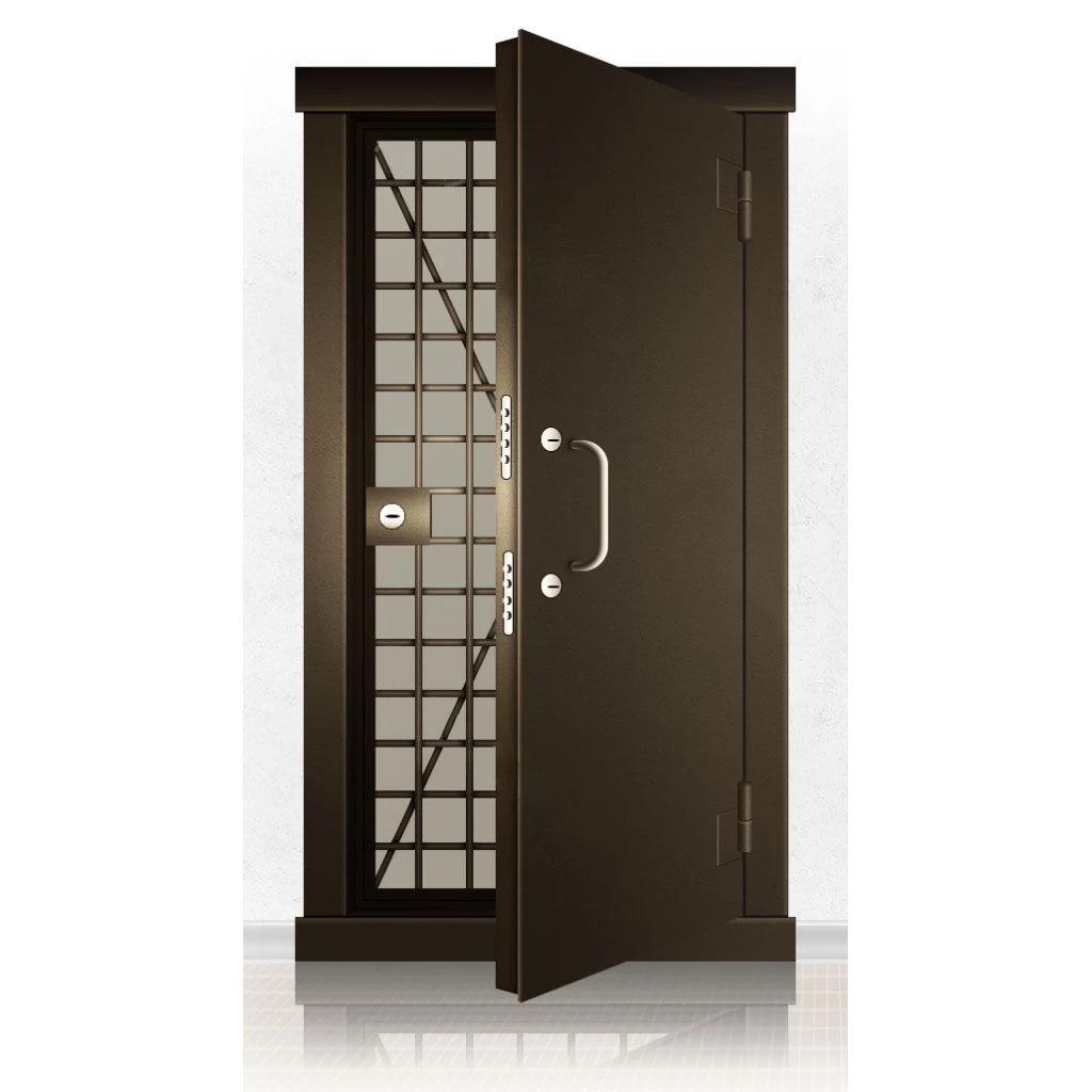 Металлические двери КХО и КХН представляют собой входные блоки, обладающие высоким уровнем взломостойкости и состоят из трех основных элементов: усиленного каркаса, сплошного металлического полотна и решетчатой двери. Дверной блок изготавливается из стального уголка 100*100 мм. Места крепления блока к стене цементируются и закрываются стальными наличниками шириной 40 мм. Крепеж заходит вглубь стены на 80 мм. В конструкции внешней створки монтируются ребра жесткости, для обшивки используется сталь толщиной не менее 3 мм. Внутренняя решетка изготавливается из прутка диаметром 16 мм. Размер ячеек решетки должен составлять не более 15 на 15 см. В точках пересечения прутья надежно приваривают друг к другу. В КХО и КХН необходимо поддерживать определенную температуру и влажность. Для этого внутреннее пространство глухой двери заполняется теплоизоляционным материалом, а по периметру двери приклеивается уплотнитель. Такие двери оборудуются замками с повышенным уровнем взломостойкости. Специализированные двери КХО и КХН в Уржуме могут быть оснащены сигнализацией, в конструкции могут быть проушины для навесного замка и элементами для опечатывания. Если идет речь о двери в комнату хранения оружия, в створке оборудуется окно для выдачи оружия и спец. средств, которое накрывается стальной дверцей.