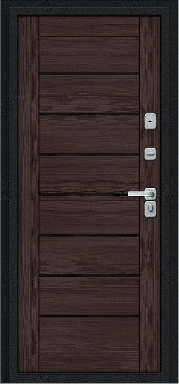 Дизайнерская входная Дверь Браво Thermo Техно Д2/BChrome Букле черное/Wenge Melinga класса Люкс с несколькими листами стали, звукоизоляцией и теплоизоляцией. Утепленный короб и полотно защитят от сквозняков и шумов. Модель не только надежная, комфортная, защищенная и высочайшего качества, но и очень красивая! Будет отлично сочетаться с интерьером дома, квартиры или офиса. Сейчас действует выгодное предложение по цене: 57 437 руб.